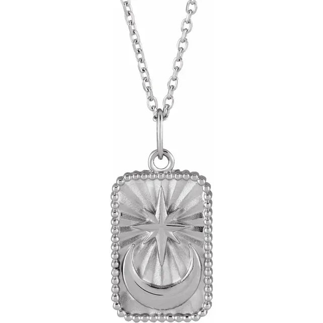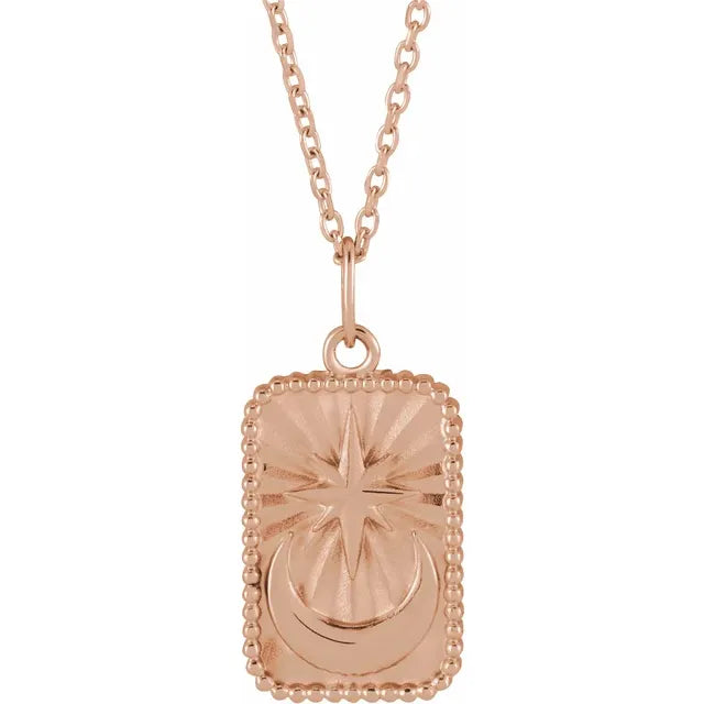 Transform any outfit into a luxurious ensemble with our "Divine" Necklace. Crafted from delicate 14k yellow gold, the pendant features a mystical moon and star design surrounded by radiant rays of light. The intricate beaded edge adds a touch of sophistication. Perfect as a sentimental gift for your moon and stars, this necklace is sure to impress with its thoughtful and elegant design.
