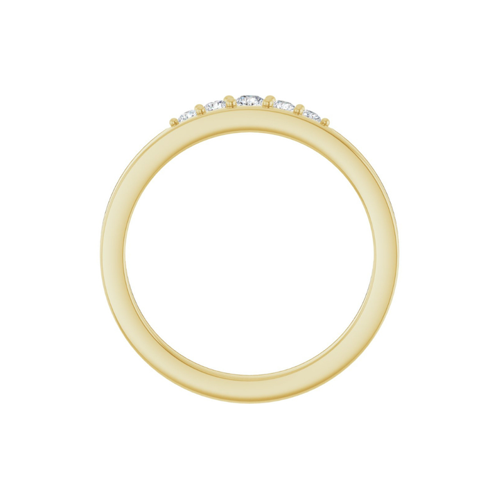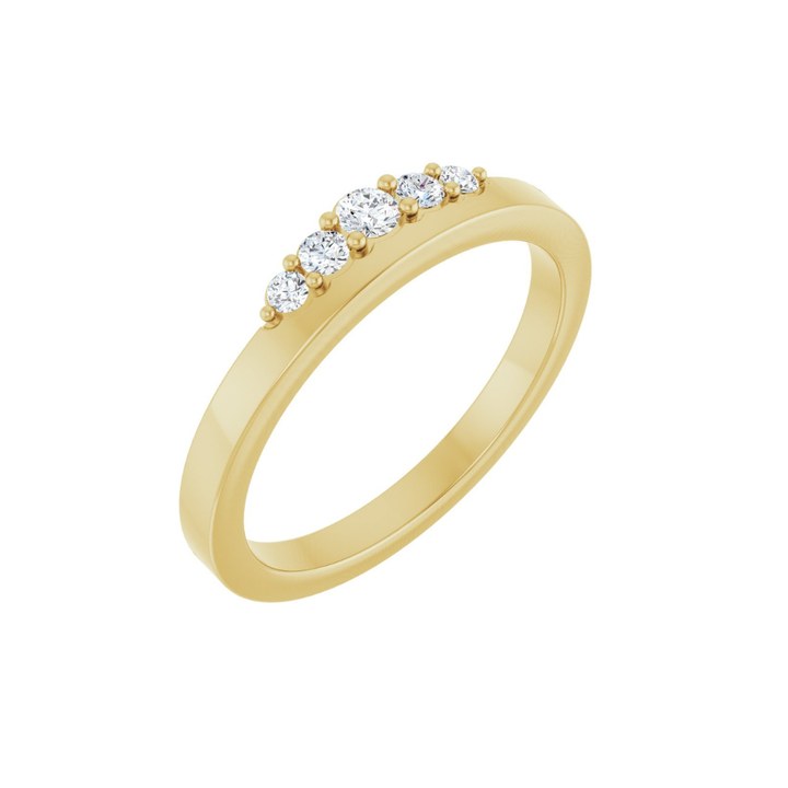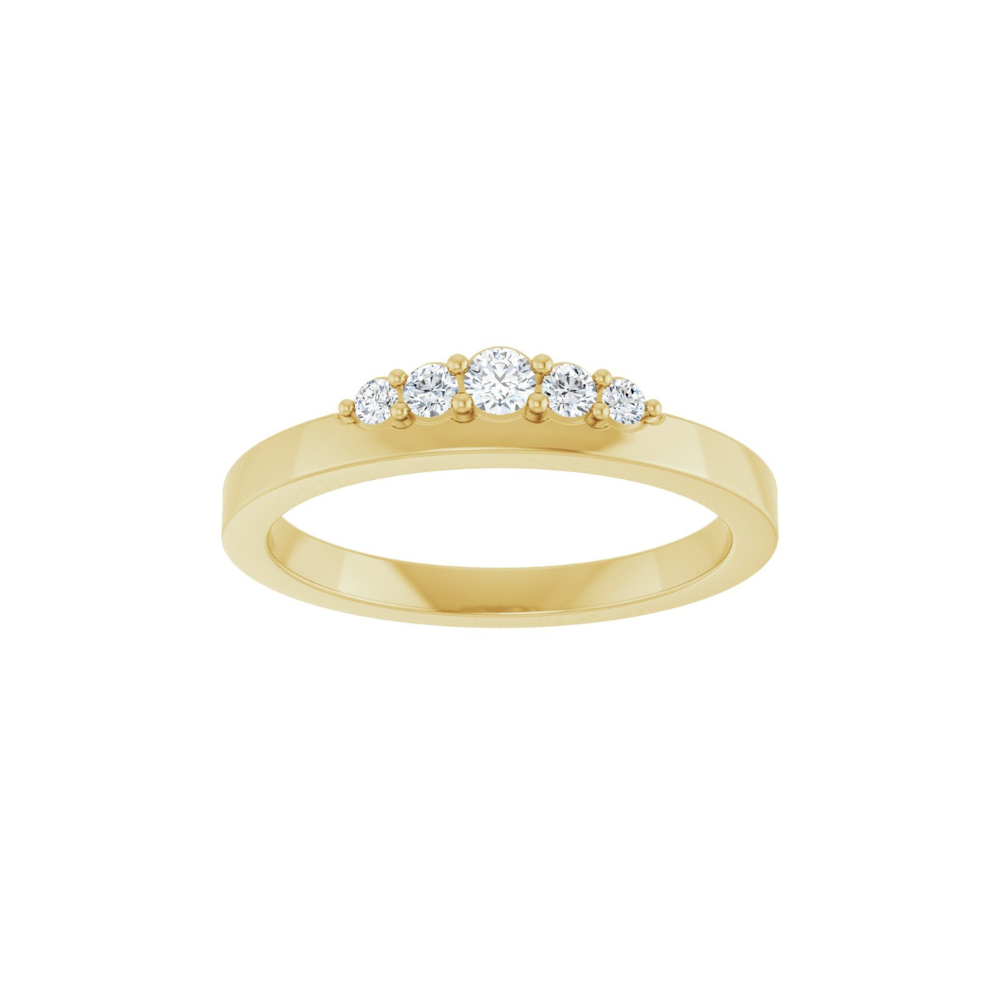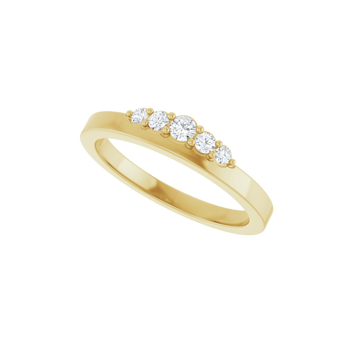 Introducing the “Sadie” ring, crafted in 14k yellow gold and accented with five round brilliant diamonds in a shared-prong setting that forms a subtle, crown-inspired detail. The slim, polished band gives it a light feel, making it easy to wear every day. Beautiful on its own or layered with other favorites, "Sadie" offers soft sparkle and timeless elegance.