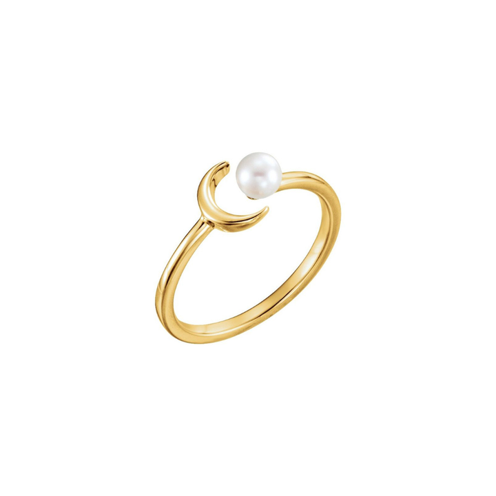 This "Luna" Ring is crafted from luxurious 14k yellow gold and adorned with a stunning crescent moon offset by a natural freshwater pearl. The soft glow of the pearl captures the moon's beauty, making this ring a thoughtful and sweet gift that reflects your everlasting love. Forever, like the moon.