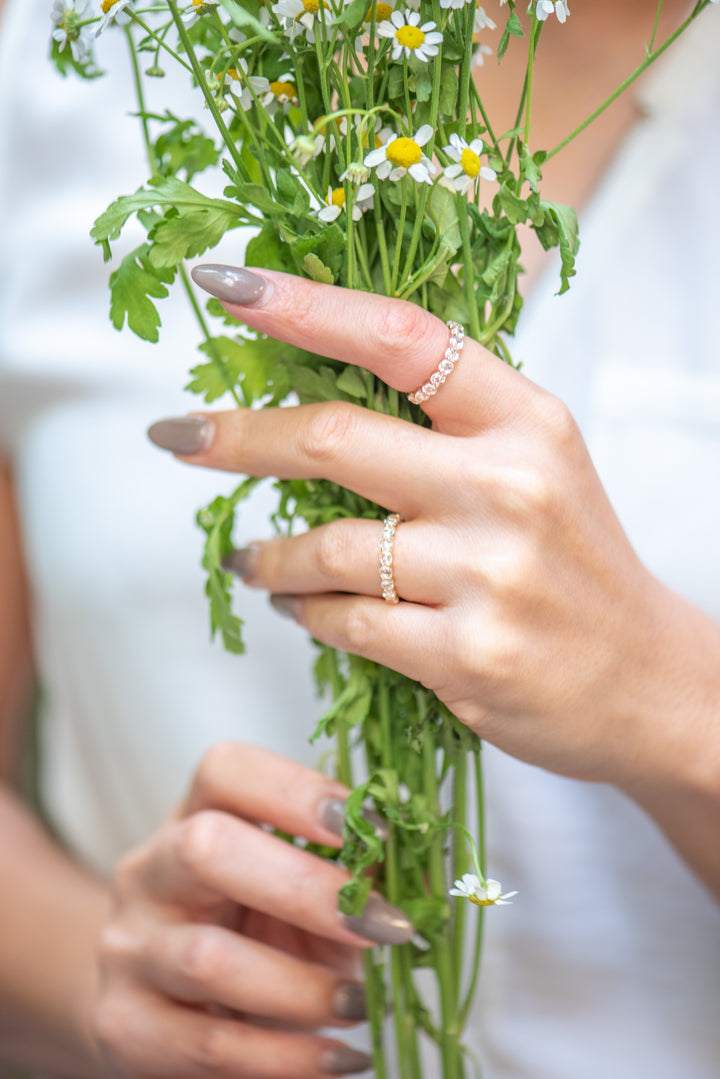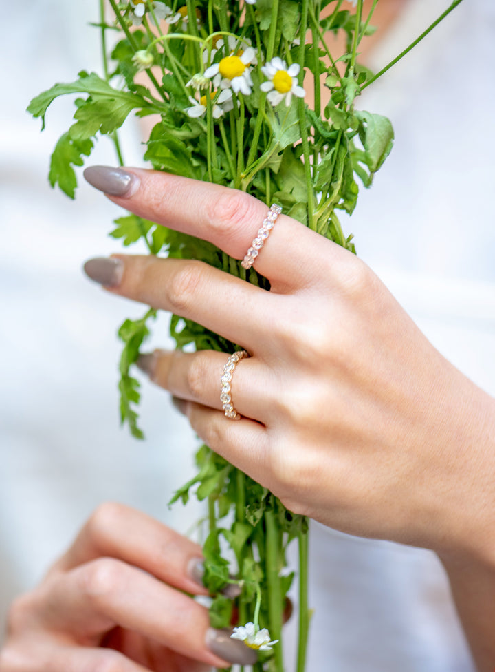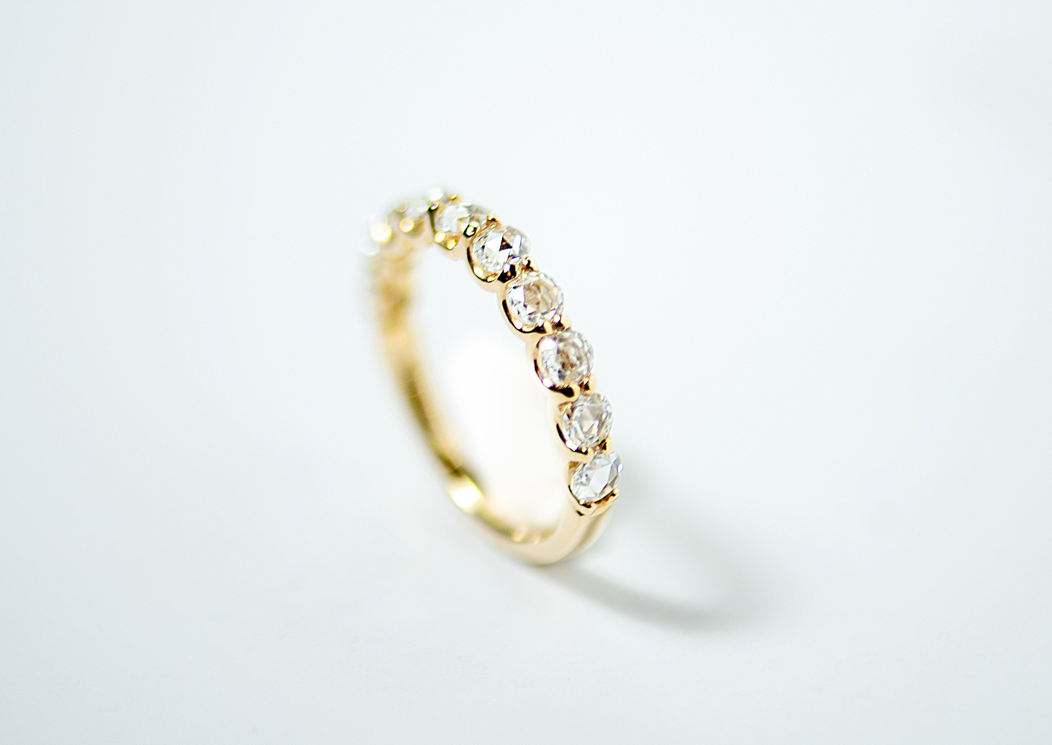 Indulge in the sensuality and elegance of the "Rosalind" Ring. This luxurious wedding band features a classic design with a twist - round rose cut diamonds set in yellow gold for a shimmer that evokes old-world glamour. Perfect for those seeking a sophisticated and timeless statement piece.