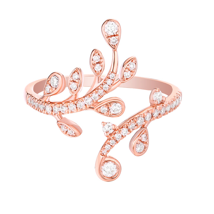 Wear the "Ophelia" Ring to show off a feminine style! This ring features a shimmering rose gold finish, a fabulously unique design, and sparkling diamond features. A wonderful piece to dress up your outfit.