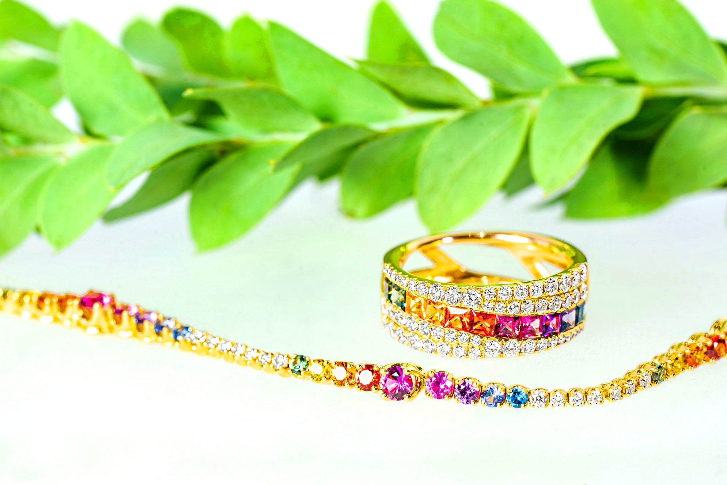 - Primary Stones: 11 Multi-Colored Sapphires - 1.12 total carat weight