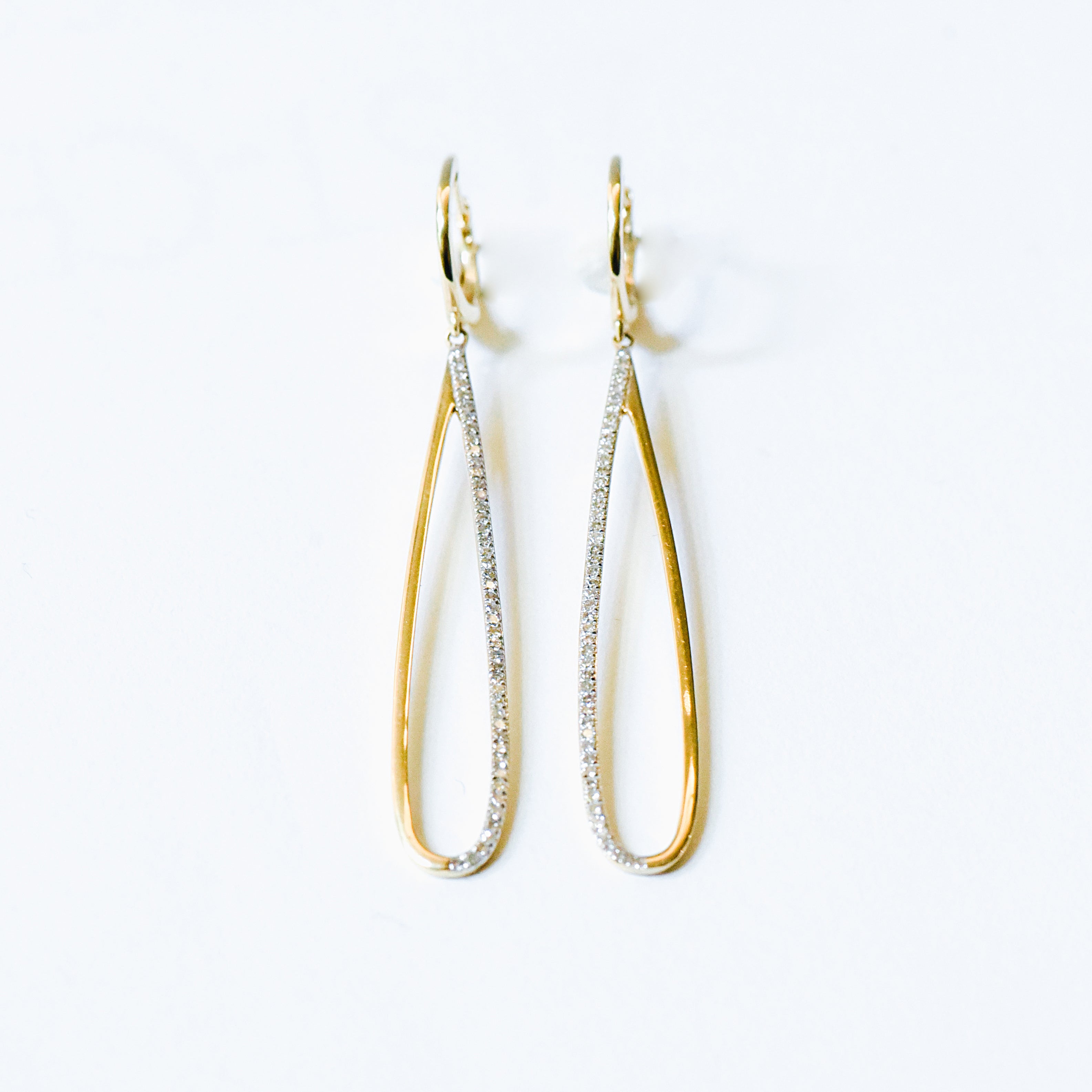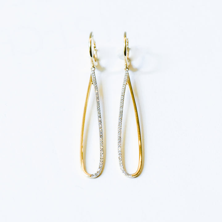 The chic "Summer" earrings feature a tear drop outline encrusted with 100 round diamonds with a total carat weight of 0.34 ct. This versatile pair of earrings is appropriate for all occasions. It can be dress up for a night out in the city or down for work.