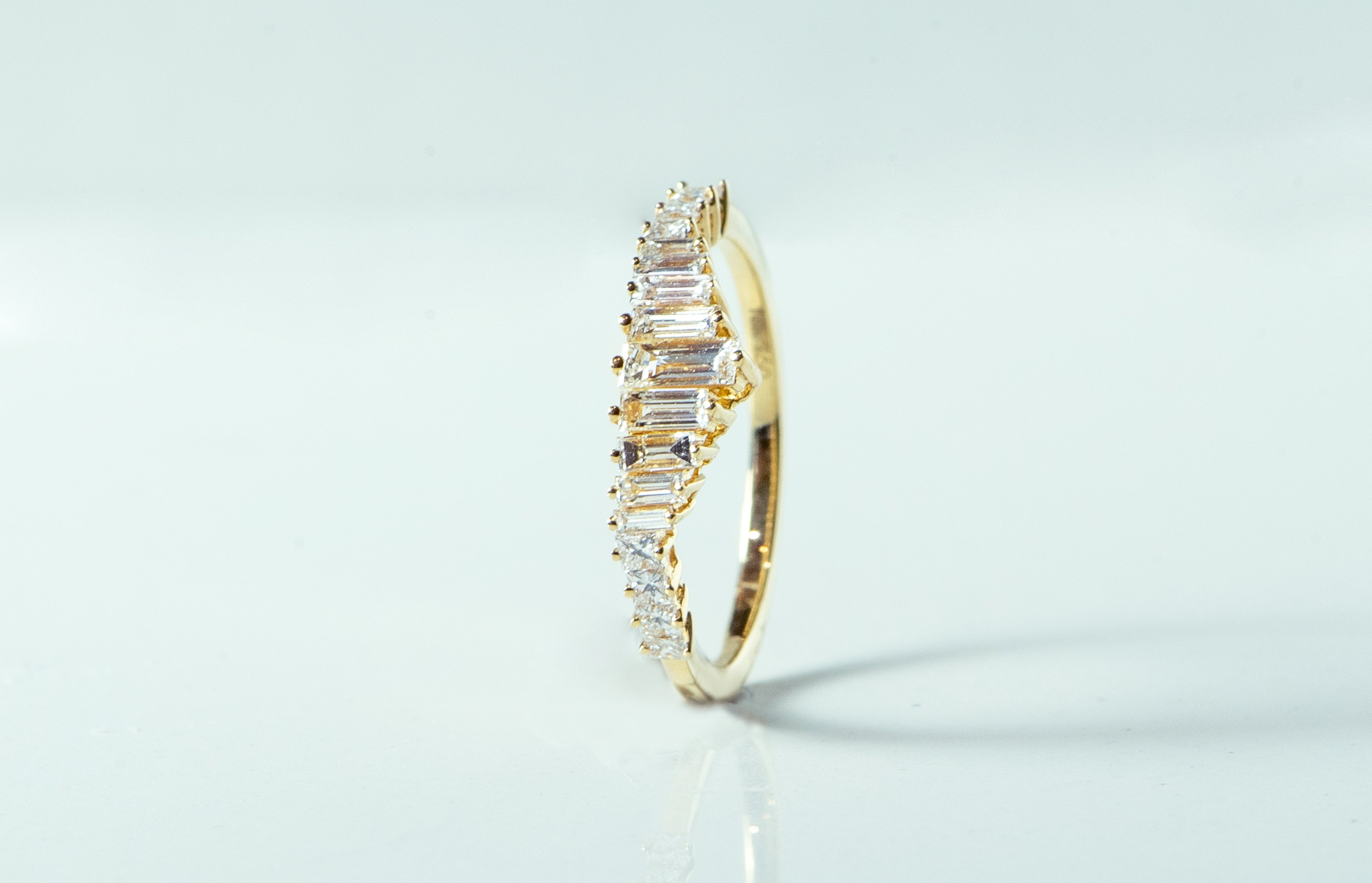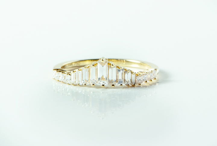 - Primary Stone: 9 Baguette Diamonds - 0.41 total carat weight