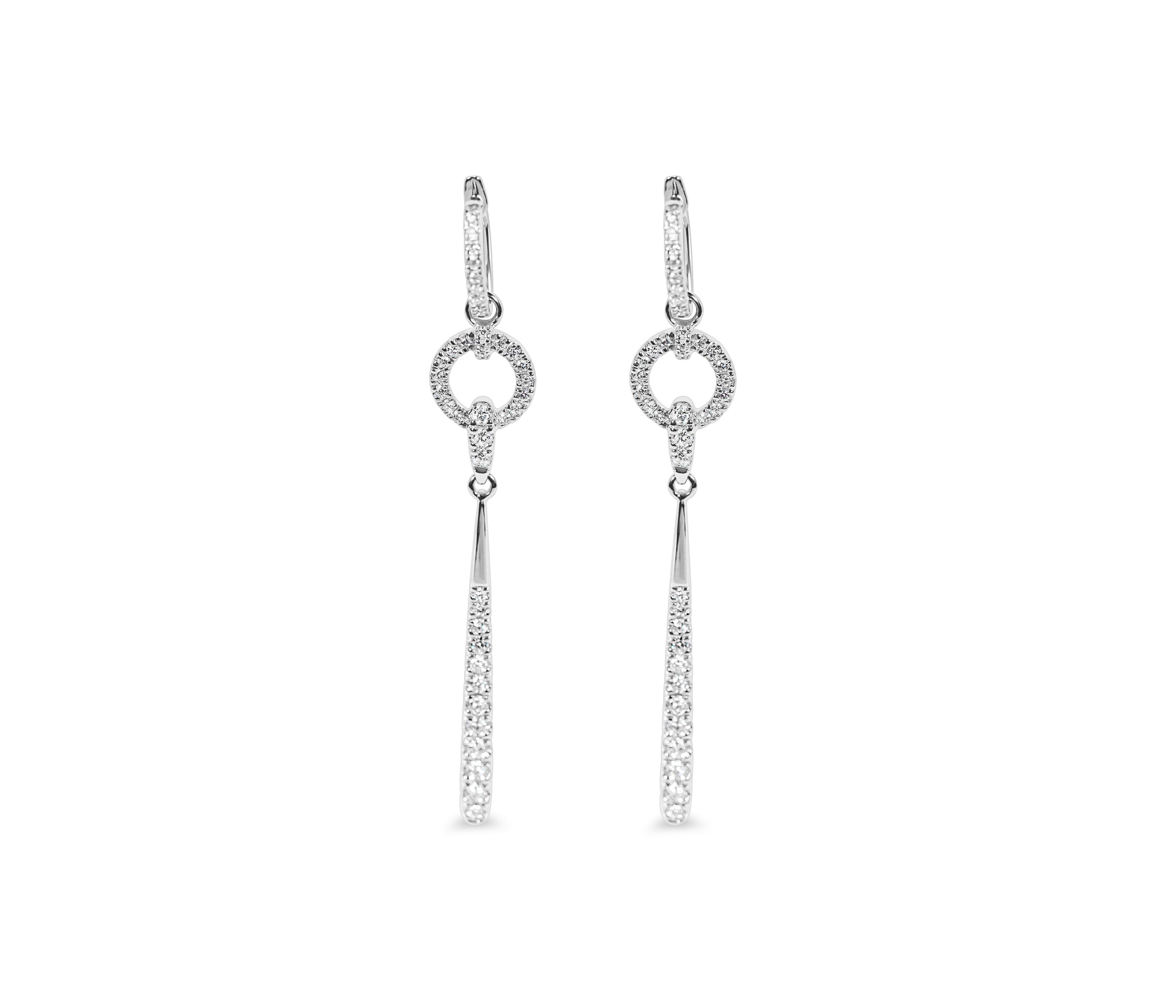Indulge in luxury with our "Arabella" Earrings. Made of exquisite white gold, these delicate earrings feature linear diamond drops that add a touch of elegance to any outfit. Perfect for brides or any special occasion, these earrings will make you feel like a timeless beauty.