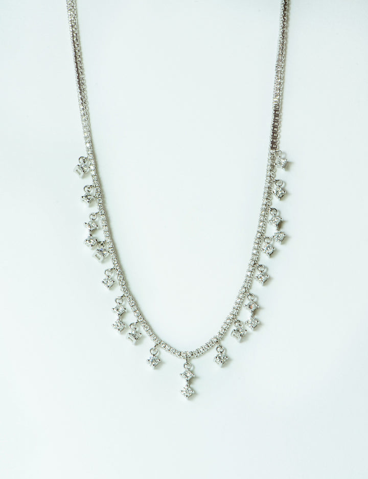 Unveil the enchanting allure of the "Juliet" Tennis Necklace, a captivating blend of elegance and sophistication. Featuring a diamond dangle tennis necklace adorned with bridal-inspired diamonds, delicately suspended from a cable link chain, it exudes timeless beauty and refined luxury. Elevate your ensemble with this stunning necklace, epitomizing grace and sophistication, destined to leave a lasting impression, just as you requested.