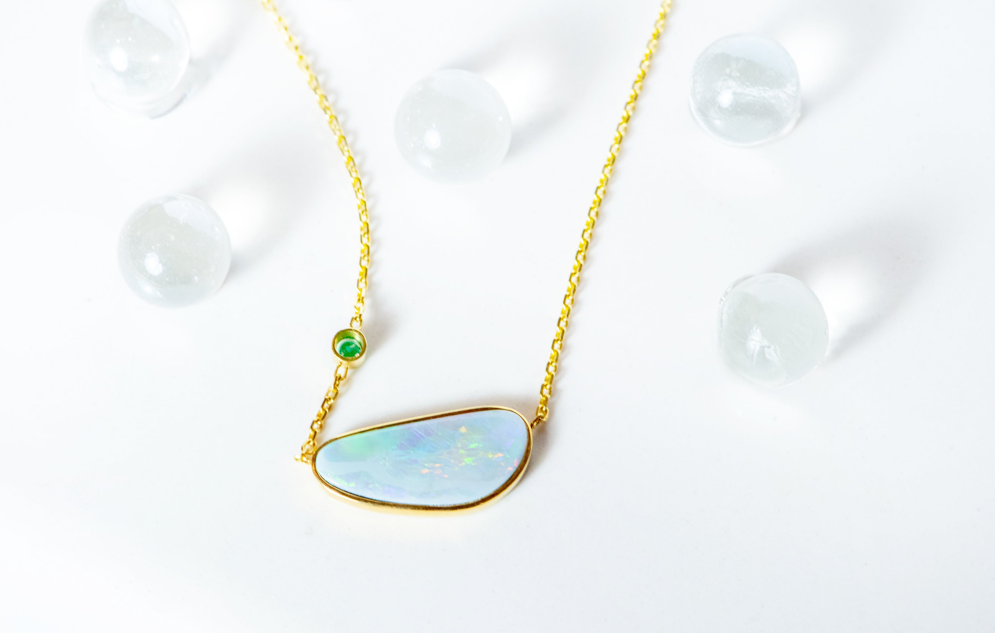 Indulge in pure luxury with our "Opalescence" Necklace. The over 3ct opal shimmers with unique beauty, while the emerald elegantly offsets on the 14k yellow gold chain. Each opal is one-of-a-kind, making this exquisite piece truly exclusive. Elevate your style with the beauty of nature's treasures.