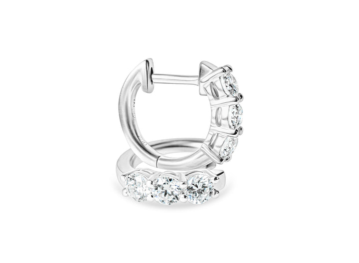The "Izzy" Earrings are a perfect blend of simplicity and sparkle, crafted in white gold huggie style for a snug, comfortable fit. Each earring features three round diamonds, delivering big brilliance with over half a carat in total. Designed for everyday wear, they effortlessly elevate any outfit while maintaining all-day comfort. For added versatility, these earrings can be dressed up with charms or mixed and matched with the yellow gold version, offering endless styling possibilities.