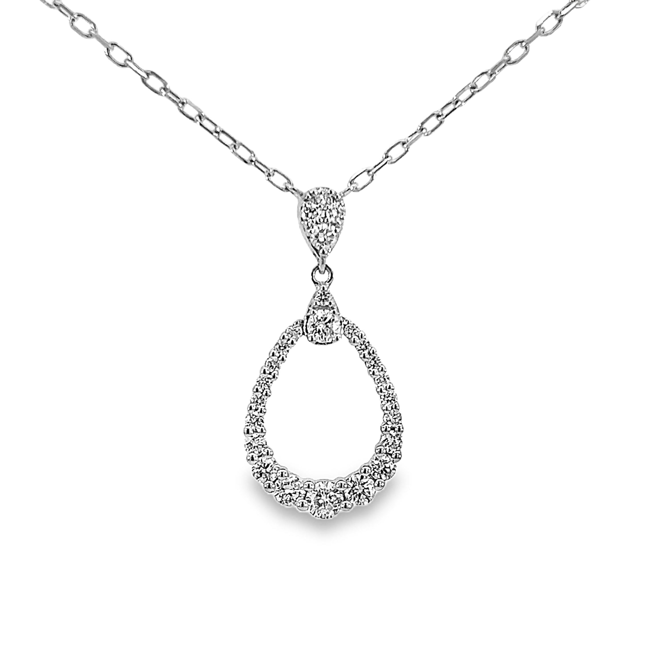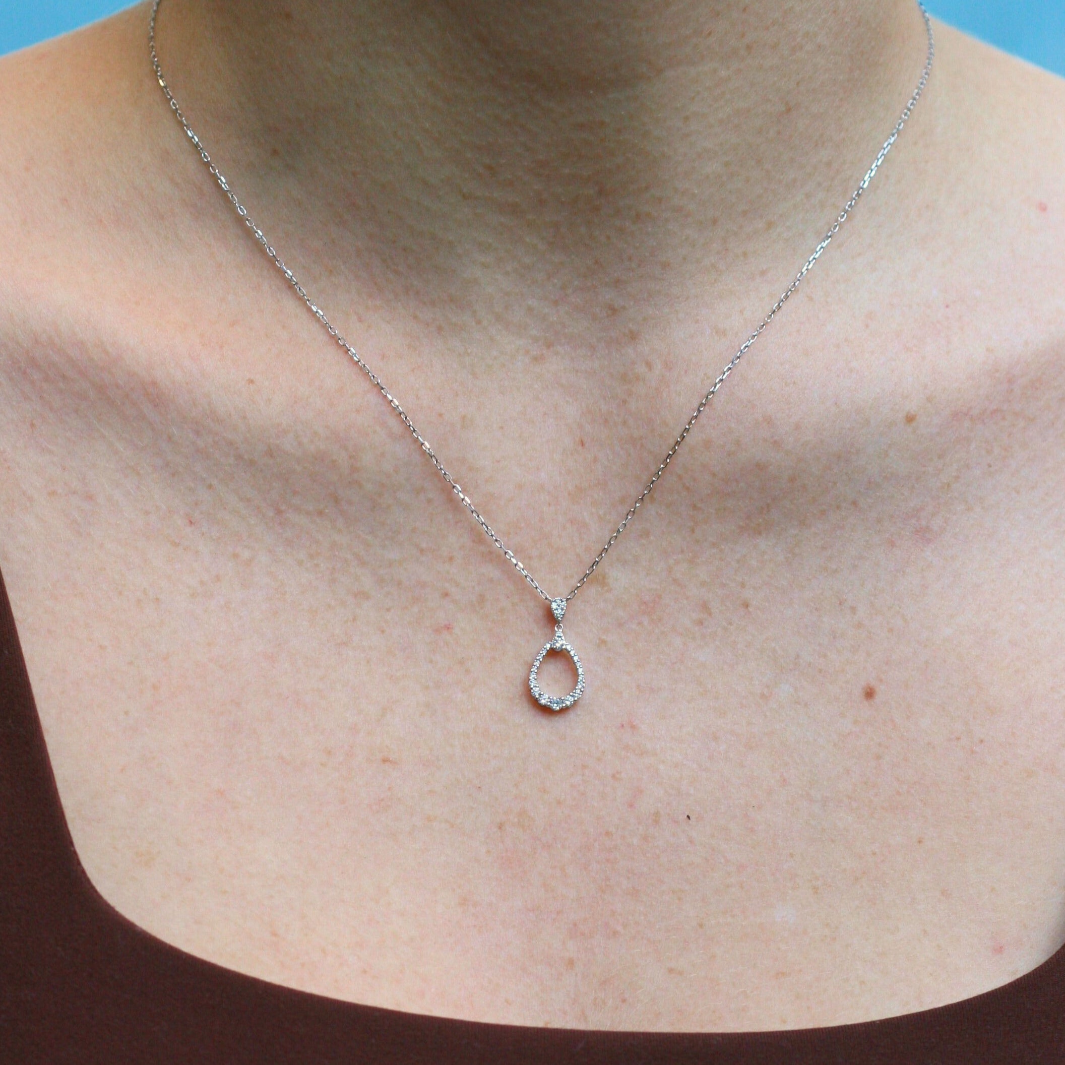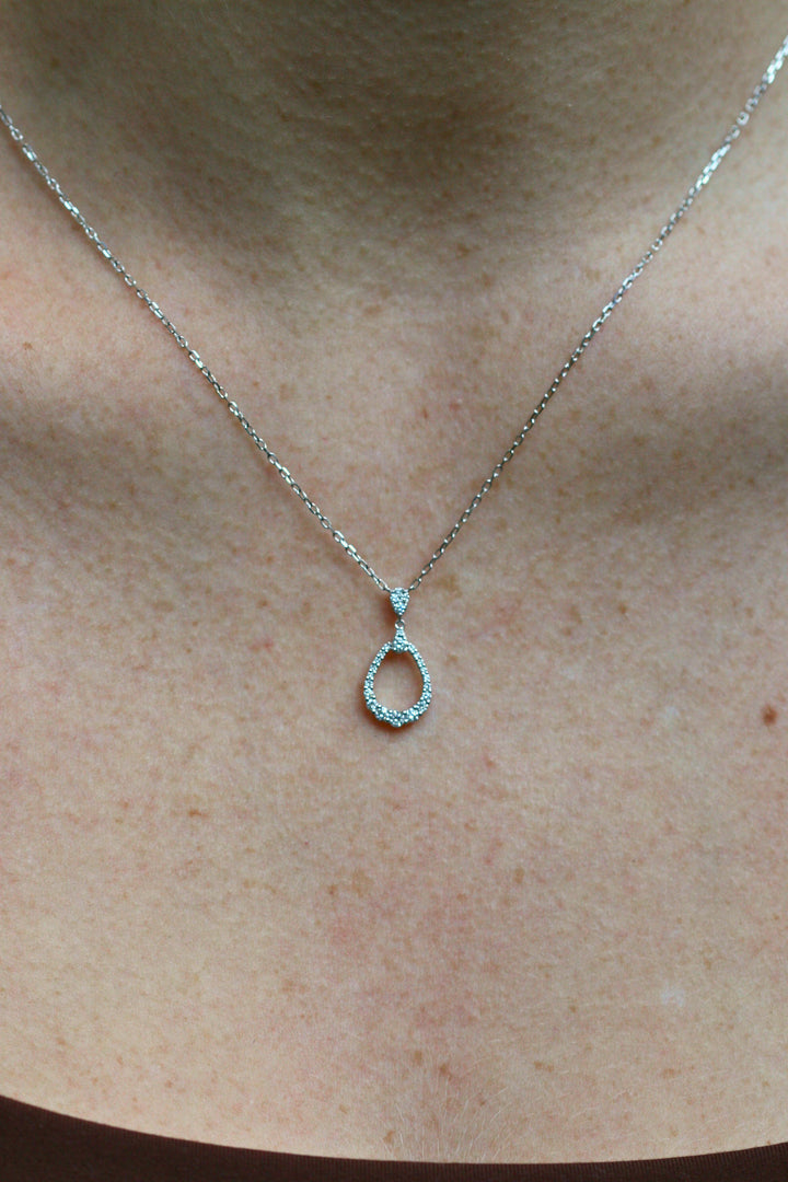 The "Lorna" Necklace is a delicate masterpiece, featuring diamonds arranged in an elegant teardrop shape. A diamond-accented bail adds an extra touch of luxury, enhancing its refined design. Perfect for everyday wear, stacking with other pieces, or making a subtle statement, this necklace effortlessly blends timeless elegance with modern versatility. A radiant choice for any occasion.