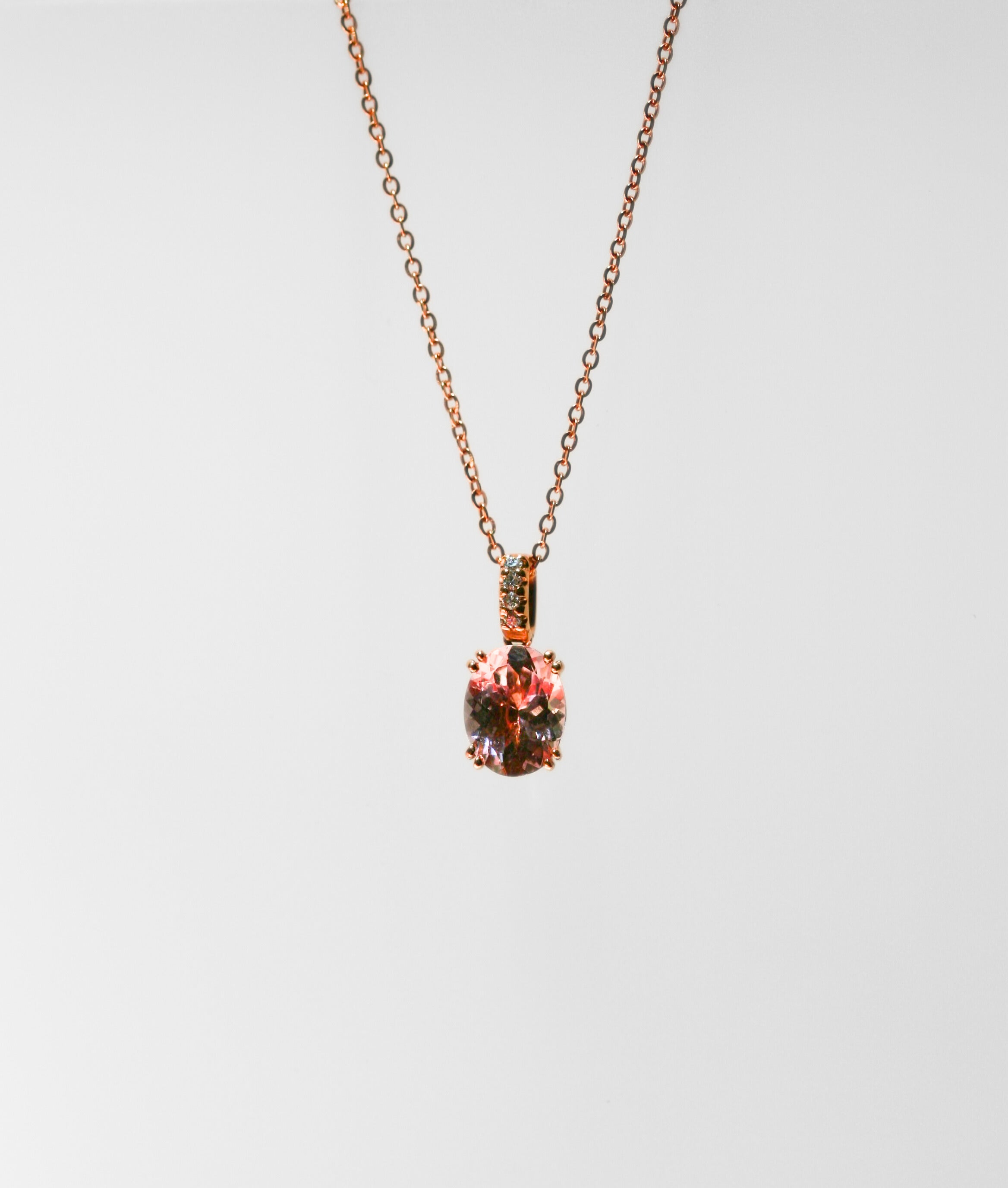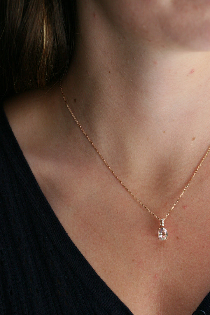 Indulge in luxury with our "Morgan" Pendant. Crafted with a stunning true pink morganite, this pendant is accented by a diamond pave bail for an elegant touch. Complete your look by adding a chain, sold separately. Elevate your style and make a statement with this exquisite piece.