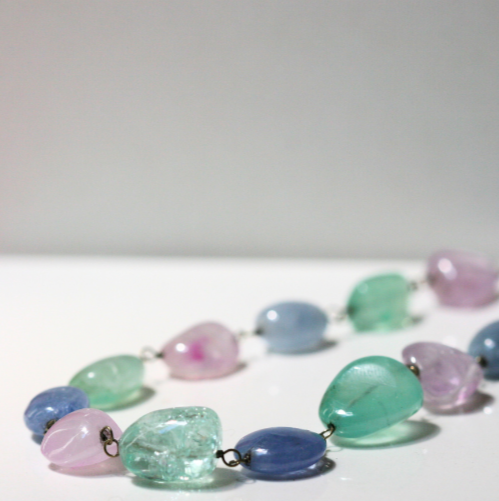 - Primary Stones: Tumbled Emerald, Ruby, and Sapphires